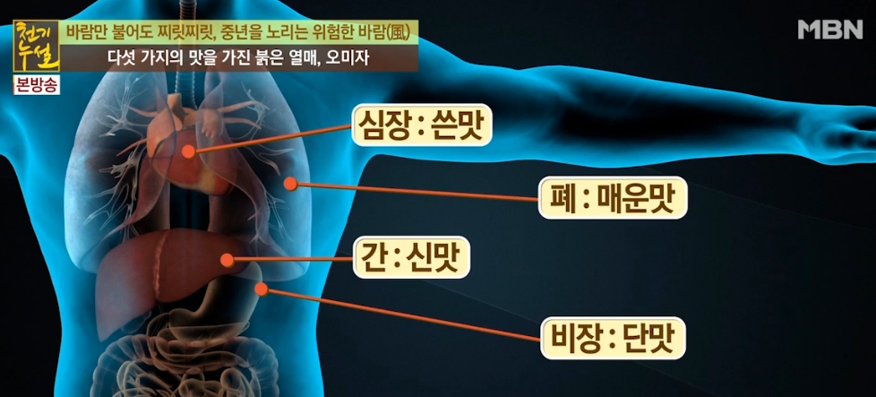 오미자의 미신 성분은 위액의 분비를 억제 시켜 속쓰림,배아픔에
