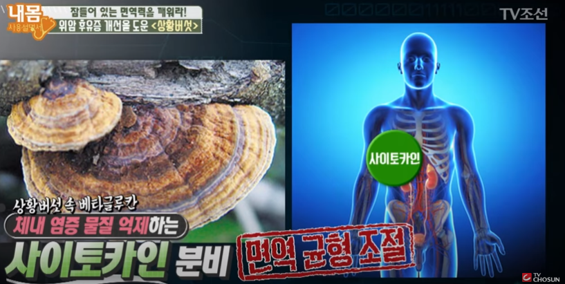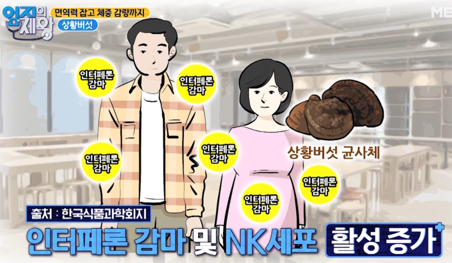 상황버섯은 인터페론 감마 물질을 생성 촉진시키는데요 인터페론 감마는