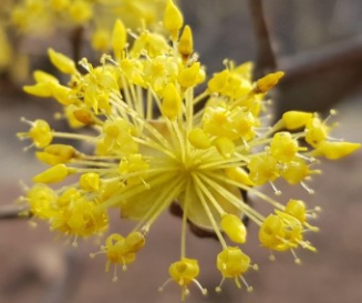 산수유 꽃은 봄에 피는데요 3월~4월 사이에 잎보다 꽃이 먼저 피며 색깔은 노란색입니다.