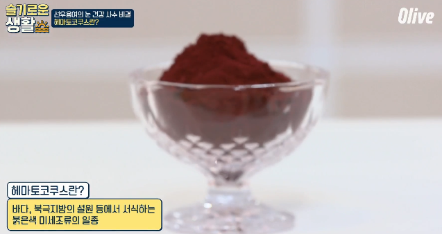 수요성 및 지용성의 헤마토코쿠스 아스타잔틴은 흡수율이 좋아 분말 가루를 샐러드나 요리