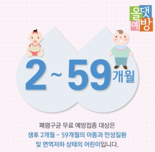 ※단백결합 백신 같은 경우는 생후 2~59개월 소아는