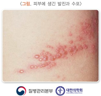 통증이 동반되고 대개는 면역력이 약한 어린이나 60세 이상의 노인층에서