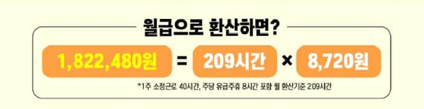 ▷▶ 월급: 1,822,480원 = 209시간 x 8,720원