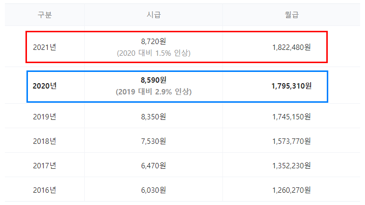 2021년 최저임금 : 월급