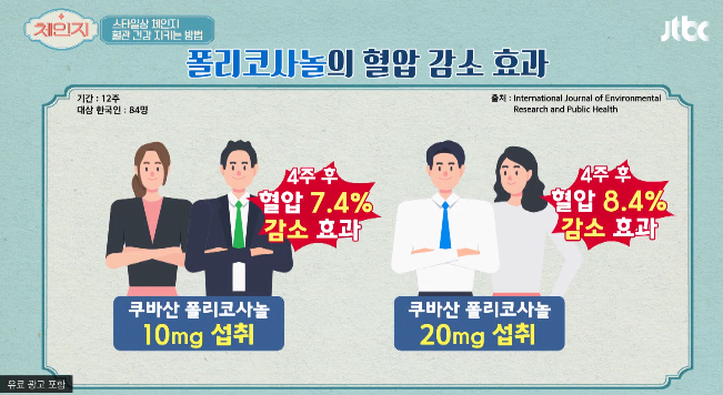▷▶ 폴리코사놀 복용 후 혈압 감소 효과 연구 결과.